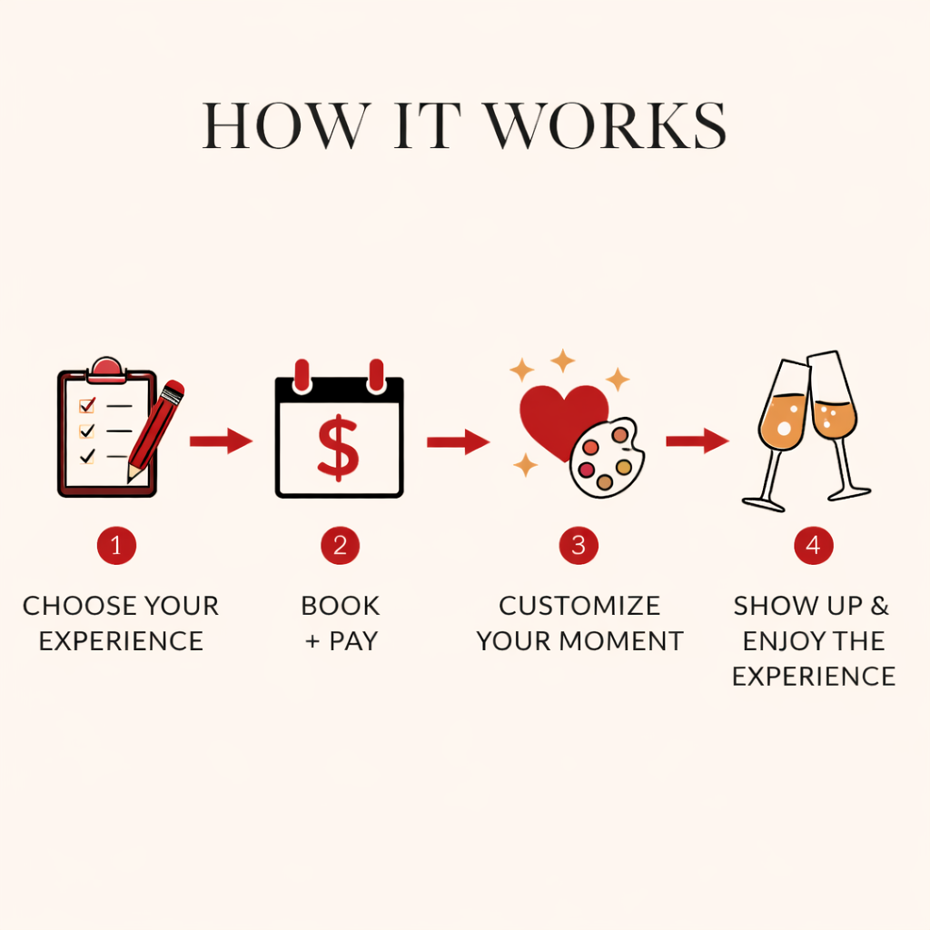 A curated “just us” experience created to help you reconnect through ambiance, conversation, and intentional moments that feel grown and romantic.